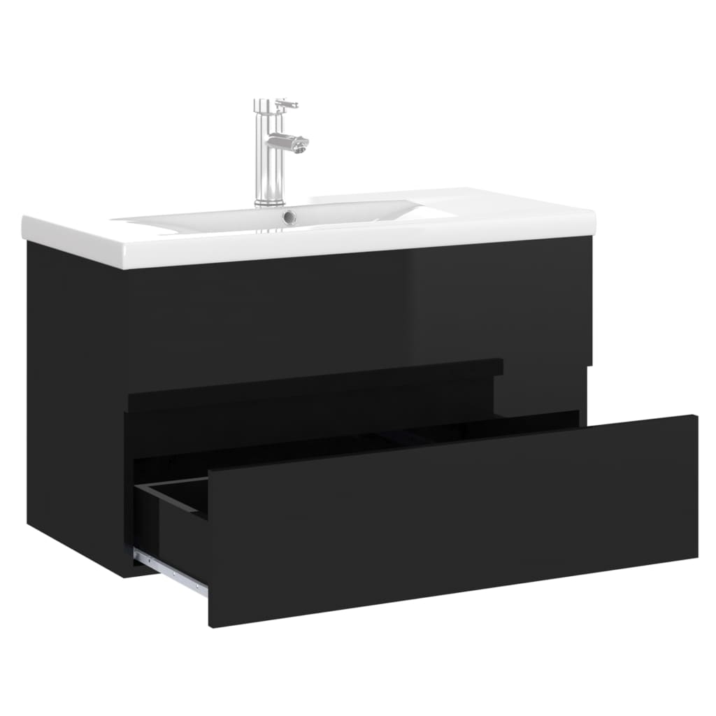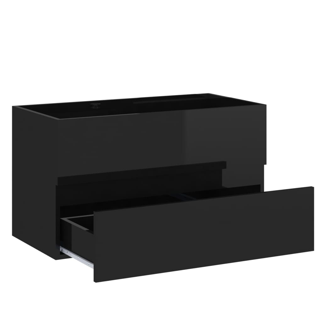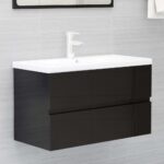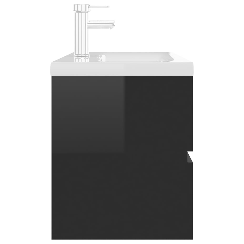 Armoire d'évier avec lavabo intégré Noir brillant Aggloméré, une touche de sobriété raffinée pour votre salle de bain