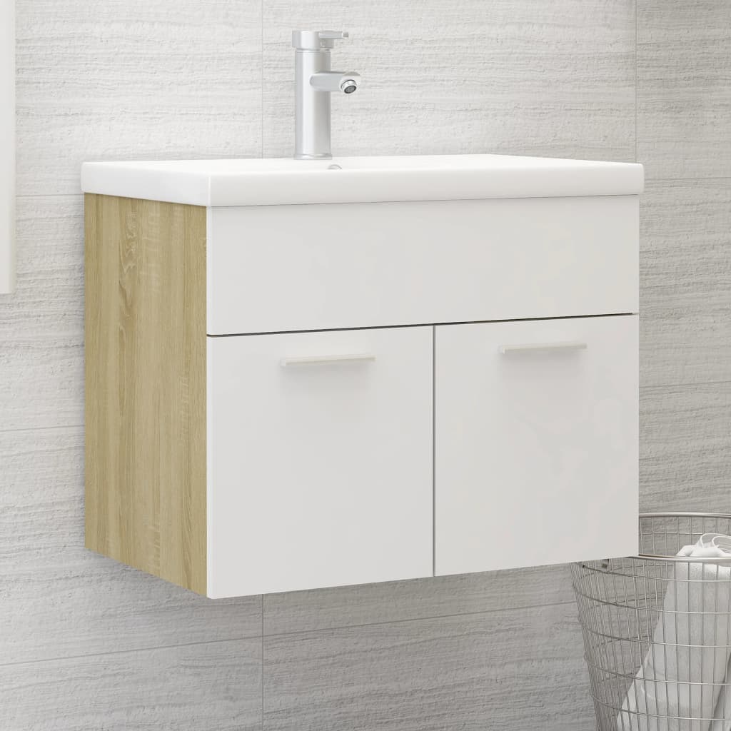 Armoire d’évier intemporelle : Blanc et chêne sonoma