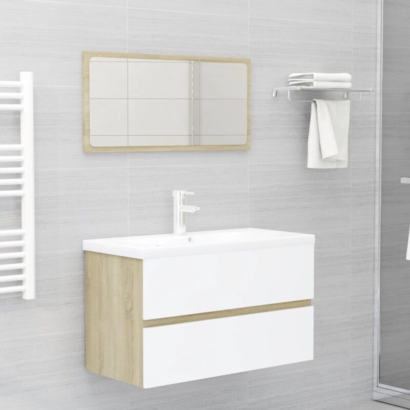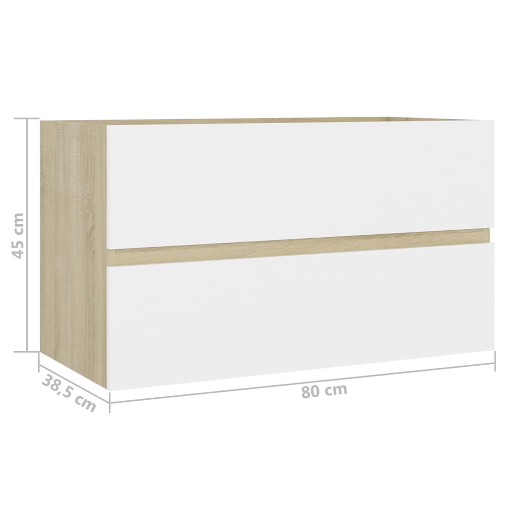 Maximisez l’espace de votre salle d’eau avec une touche d’élégance grâce à l’armoire d’évier Blanc et chêne sonoma 80×38,5×45 cm Aggloméré. Sa conception sophistiquée complète à merveille toute salle de bain en y apportant ordre et style. Fabriquée en aggloméré, sa construction garantit durabilité et stabilité. Vivez une expérience d’organisation optimale avec son tiroir spacieux, parfait pour classer tous vos accessoires de salle de bain. La surface supérieure se prête merveilleusement bien à l’installation de votre évier. Le nettoyage se fait avec aisance en un coup de chiffon humide. Il est à noter que l’évier n’est pas compris avec l’achat.