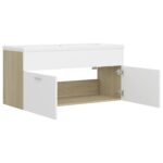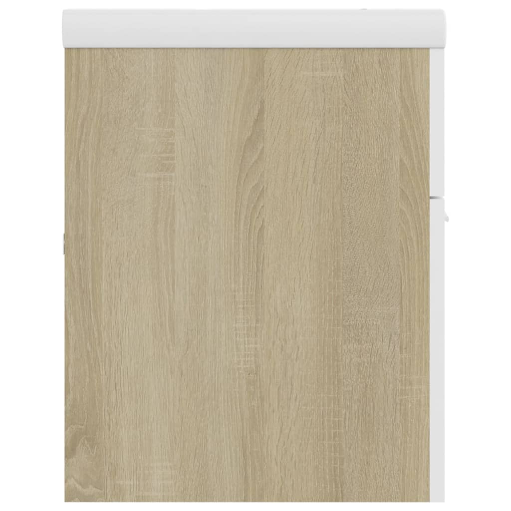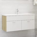Donnez à votre espace d’eau un air de nouveauté grâce à l’Armoire d’évier et lavabo intégré Blanc/chêne sonoma Aggloméré. Cette pièce combine utilité et esthétique, garantissant un rangement optimal tout en apportant une touche contemporaine à votre salle de bain.