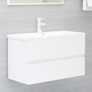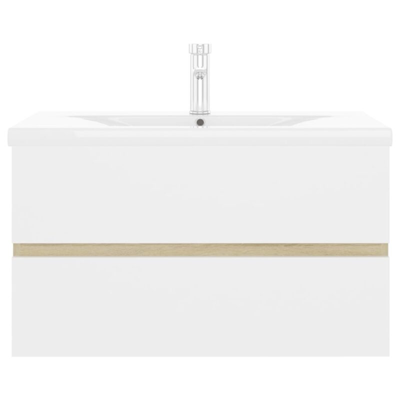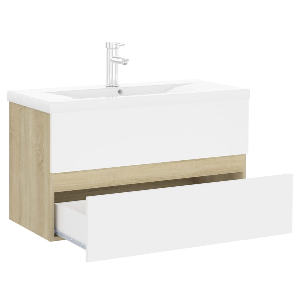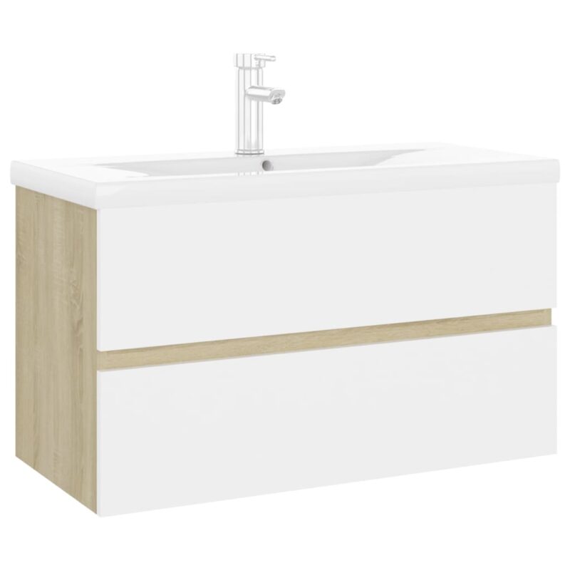 Optimisez votre salle de bain avec notre armoire d’évier et lavabo intégré au design Blanc/chêne sonoma