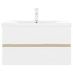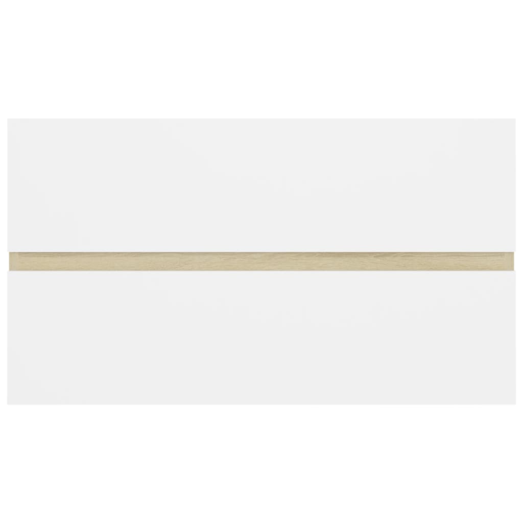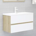 Soyez à la pointe de la tendance et de la praticité avec notre armoire d’évier et lavabo intégré Blanc/chêne sonoma en aggloméré, une solution parfaite pour embellir et organiser votre espace de bain ou vos toilettes. Robuste grâce à sa fabrication en aggloméré de haute qualité, cette armoire garantit stabilité et durabilité. Elle comprend un tiroir spacieux, idéal pour maintenir en ordre tous vos accessoires de bain. Conçue pour s’intégrer harmonieusement sous le lavabo, elle facilite le rangement et optimise votre espace.