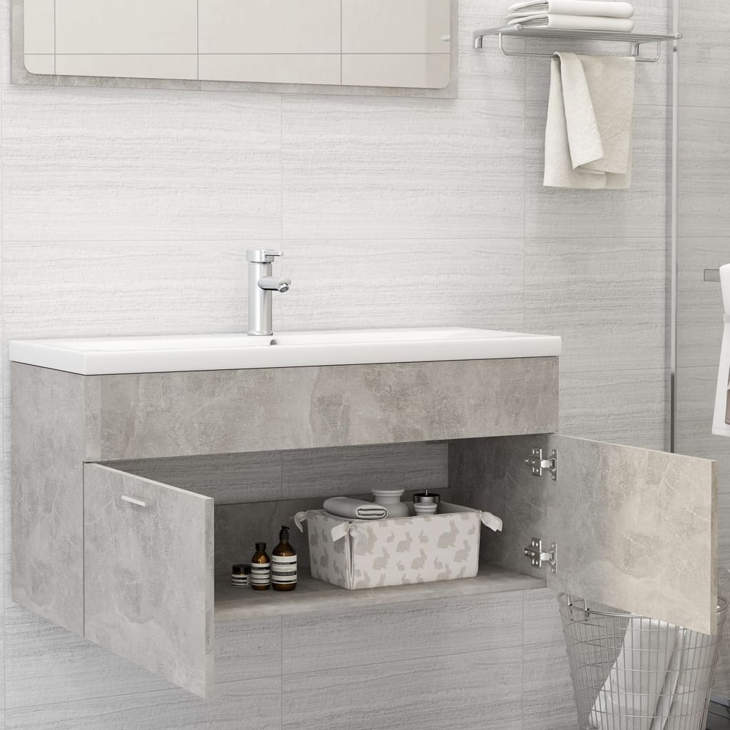 Armoire d’évier Gris Béton pour une salle de bain organisée