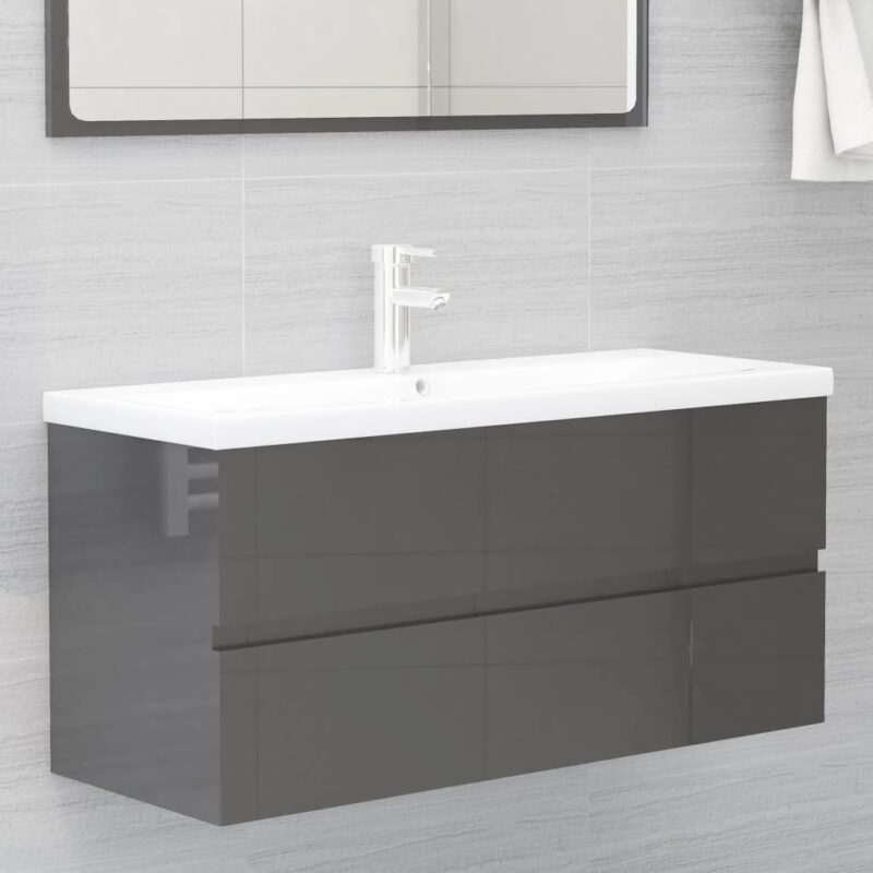 Maximisez l’ordre de votre salle de bain avec l’armoire d’évier gris brillant