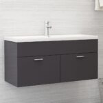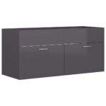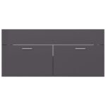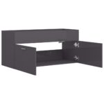 Apportez une touche de classe et d’organisation à votre salle de bains avec cette sublime Armoire d’évier Gris brillant 100×38,5×46 cm Aggloméré. Conjuguant design moderne et lignes soignées, elle s’harmonisera parfaitement avec l’esthétique de votre pièce. Fabriquée avec de l’aggloméré haut de gamme, sa durabilité et sa solidité sont des atouts majeurs. Elle offre un vaste espace de stockage grâce à un compartiment généreux et deux portes battantes, permettant de maintenir vos accessoires de bain en ordre. Le plan supérieur est spécialement conçu pour accueillir un évier, tout en maximisant l’usage de l’espace. L’entretien se fait simplement à l’aide d’un chiffon humide. Il est à noter que cet article est livré sans évier.