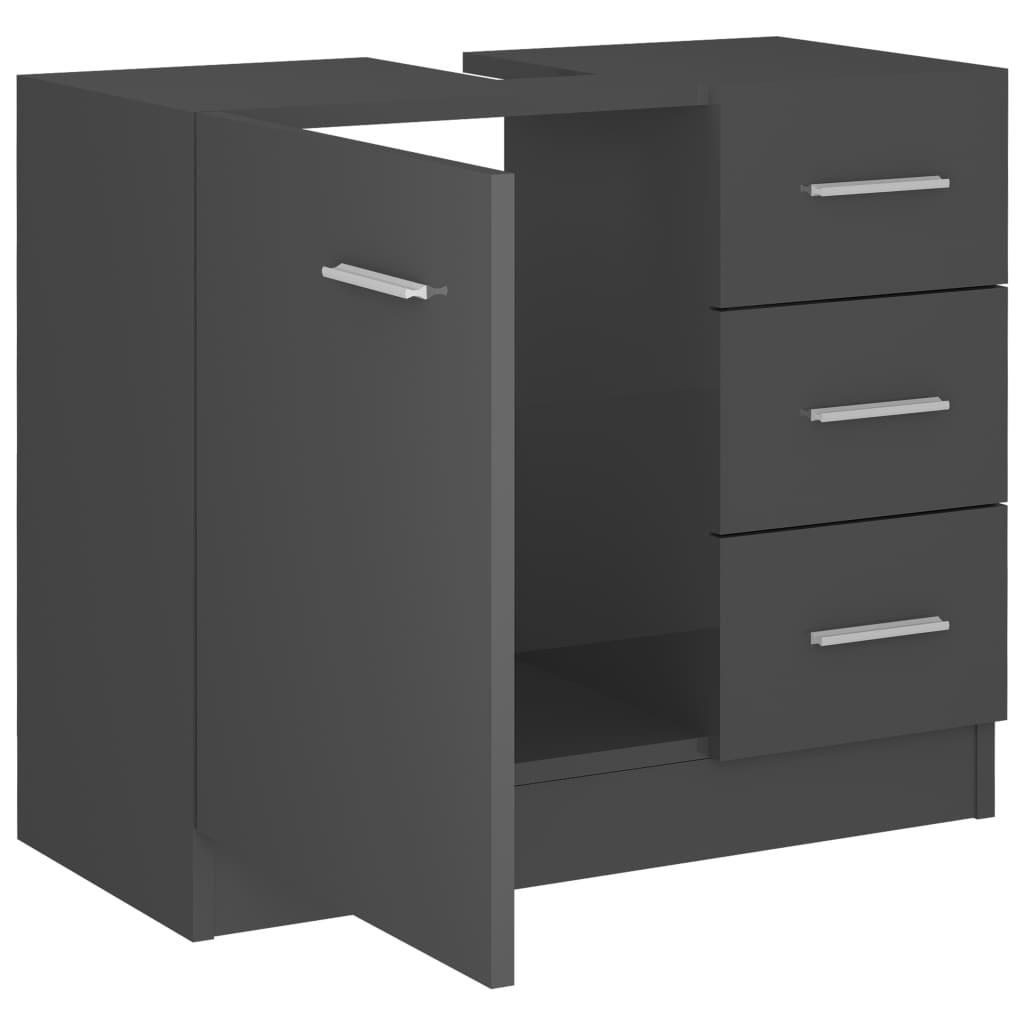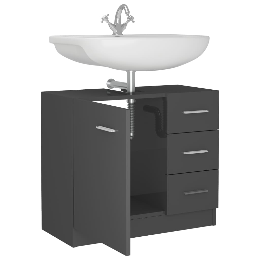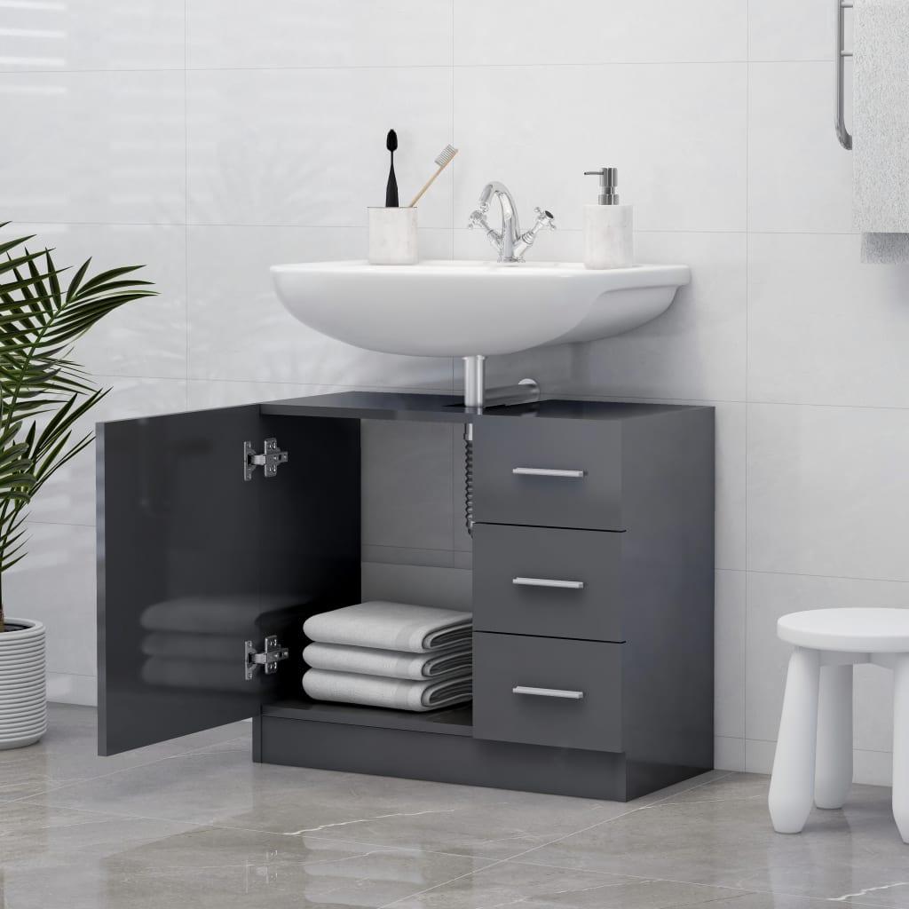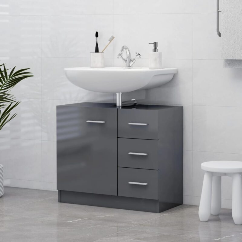 Optimisez l’espace de votre salle de bain avec l’élégante armoire d’évier Gris brillant 63x30x54 cm Aggloméré, conçue pour apporter une solution de rangement pratique tout en embellissant votre intérieur. Réalisée à partir d’aggloméré durable, cette armoire d’évier arbore une stabilité exemplaire, assurée par des matériaux de qualité.