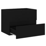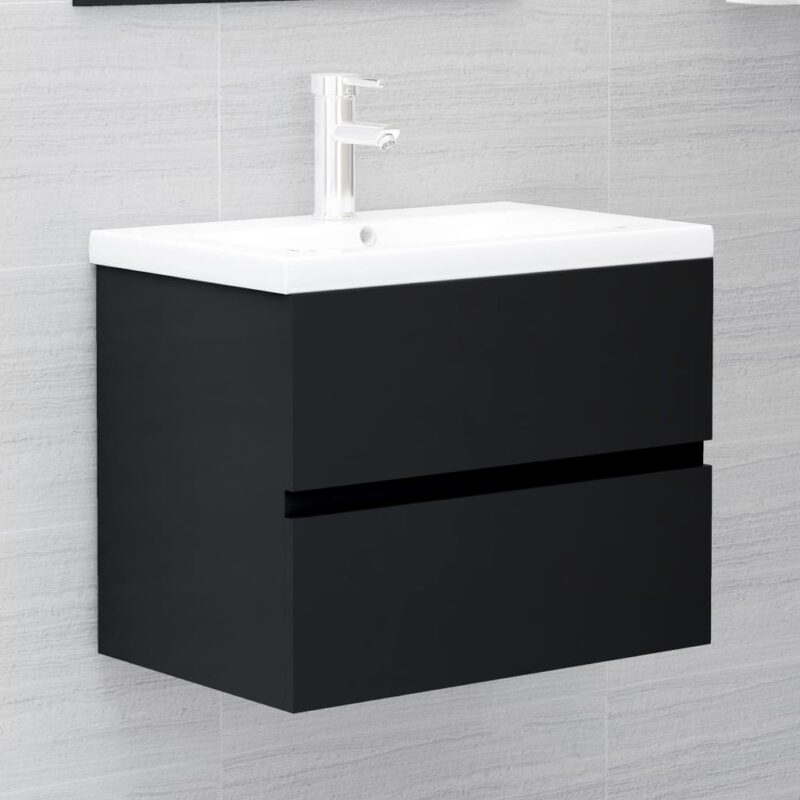 Offrez un relooking chic à votre salle d’eau avec cette Armoire d’évier Noir 60×38,5×45 cm Aggloméré. Son allure soignée et sa silhouette sobre s’harmonisent à merveille avec divers décors. Fabriquée à partir de panneaux d’aggloméré de qualité, cette armoire promet durabilité et stabilité pour un usage quotidien. Dotée d’un tiroir généreux, elle permet de dissimuler vos produits de beauté et accessoires de toilette, tout en gardant le plan de travail libre pour votre choix d’évier. La surface du meuble est conçue pour accueillir l’évier, et son entretien se fait aisément d’un simple coup de chiffon humide. À noter, l’évier n’est pas fourni avec cette unité.