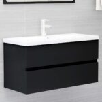 Transformez votre salle de bain avec l’Armoire d’évier Noir 90×38,5×45 cm Aggloméré