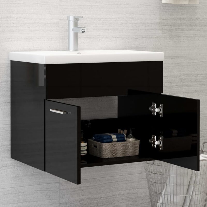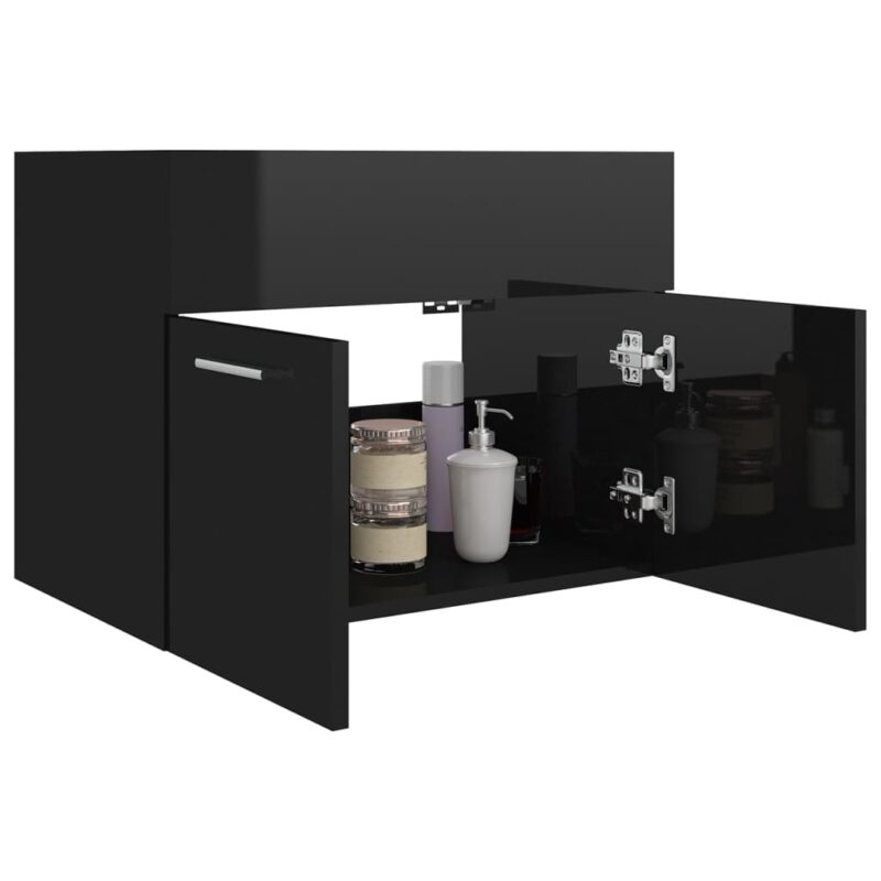 Armoire d'évier Noir brillant 60x38,5x46 cm Aggloméré 60.99