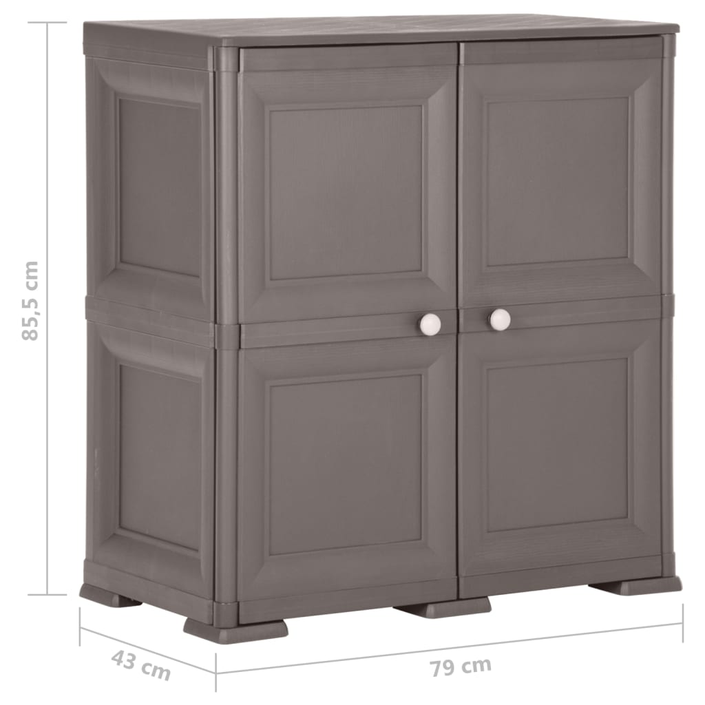 Décorez votre espace tout en y mettant de l’ordre avec notre armoire en plastique 79x43x85,5 cm au design de bois gris, parfaite pour embellir et organiser aussi bien votre intérieur que votre espace de travail ou votre cellier. Réalisée avec un plastique durable et facile à entretenir, elle est l’alternative idéale pour stocker vos affaires essentielles de façon méthodique, en les conservant à portée de main. Sa conception intelligente lui permet de s’adapter aux espaces restreints, maximisant ainsi l’utilisation de chaque recoin disponible.