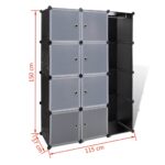 Exploitez l’élégance fonctionnelle de notre Armoire modulaire 9 compartiments Noir et blanc 37 x 115×150 cm, l’alliée parfaite pour organiser vos vêtements et chaussures. Ajoutez une touche de finesse à la décoration de votre espace de vie, que ce soit dans la chambre des enfants, le salon, l’entrée ou la chambre principale. Avec sa structure facile à nettoyer, fabriquée à partir de pièces en plastique robuste et de fil d’acier chromé, cette armoire est conçue pour durer tout en offrant une grande modularité. Créez la configuration qui vous plaît le plus rapidement et simplement, en fonction de vos besoins ou envies.