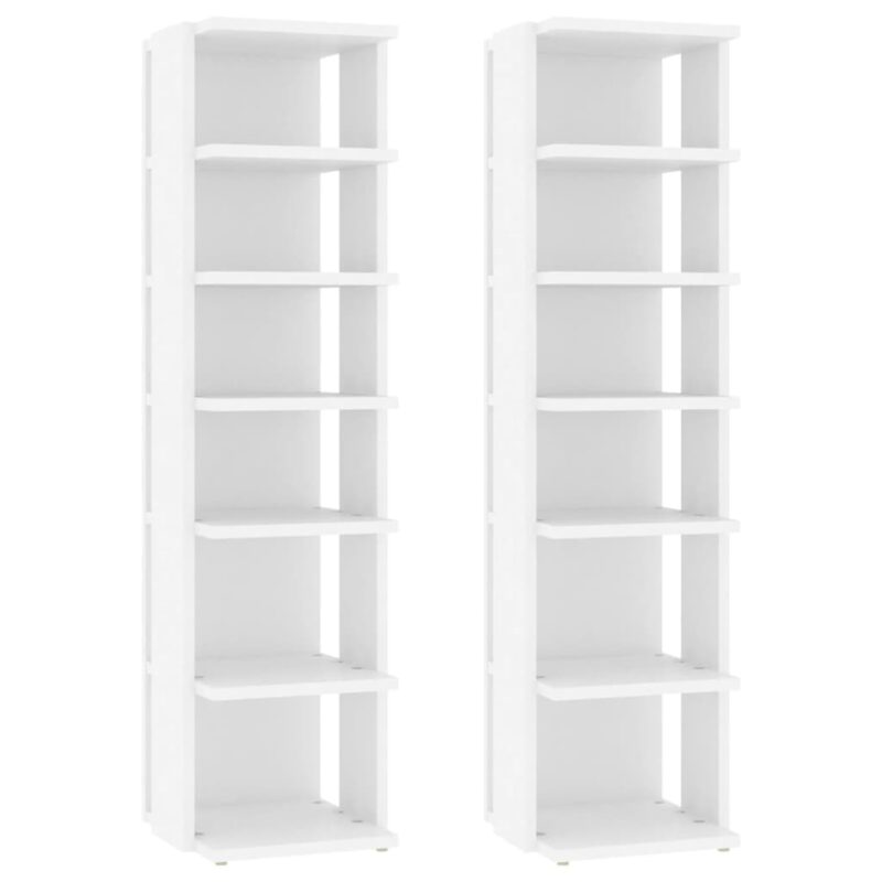 Transformez votre espace et maintenez l’ordre grâce à notre ensemble d’armoires à chaussures blanc aggloméré. Ces meubles allient élégance et fonctionnalité pour une organisation optimale de vos chaussures. Fabriquées en aggloméré robuste, elles se distinguent par leur allure épurée et leur solidité. Avec leur faible encombrement, ces armoires s’intègrent aisément dans les recoins les plus étroits, y compris sous un escalier. Chaque unité dispose de six étagères, vous offrant ainsi un vaste espace de rangement pour vos paires de chaussures.