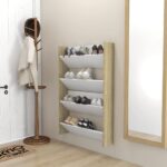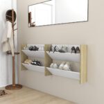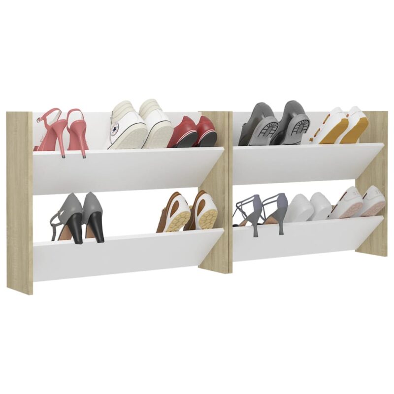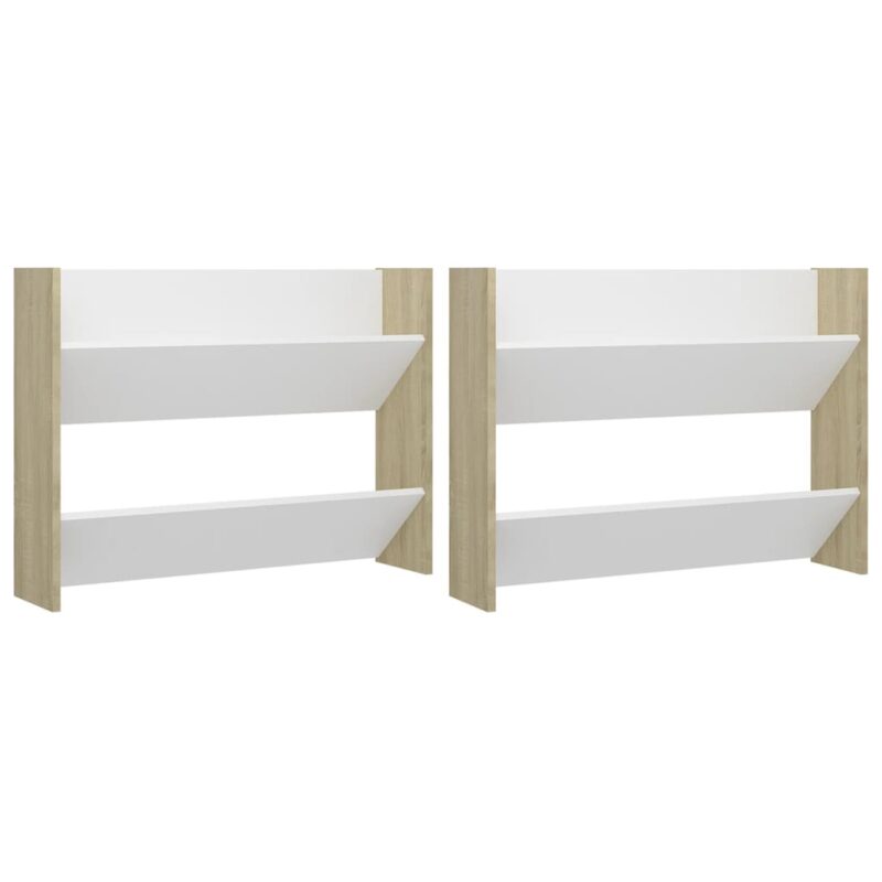 Rangement optimal avec les armoires à chaussures murales 2 pcs Blanc et chêne 80x18x60 cm