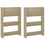 S’occupant de l’organisation de vos espaces de vie, nos armoires à chaussures murales 2 pcs Chêne 60x18x90 cm Aggloméré garantissent une tenue impeccable au fil du temps. Un nettoyage régulier à l’aide d’un chiffon légèrement humide suffit à maintenir leur éclat.