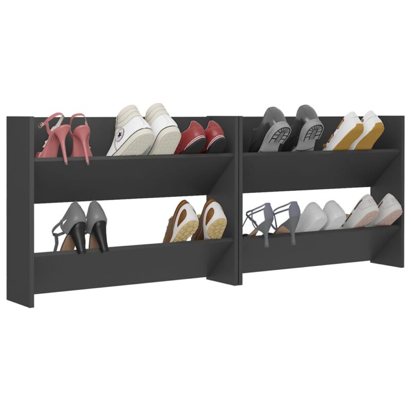 Dites adieu au désordre de chaussures grâce à ces élégantes armoires à chaussures murales, parfaites pour un rangement efficace. Avec leur couleur neutre gris, elles s’intègrent sans effort dans n’importe quelle décoration d’entrée ou de couloir. Elles sont munies de deux compartiments qui basculent, offrant une gestion impeccable et un gain de place. Ces étagères sont un choix astucieux si vous souhaitez un foyer ordonné et un sol impeccable.