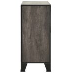 Détails des armoires de rangement gris en métal et MDF