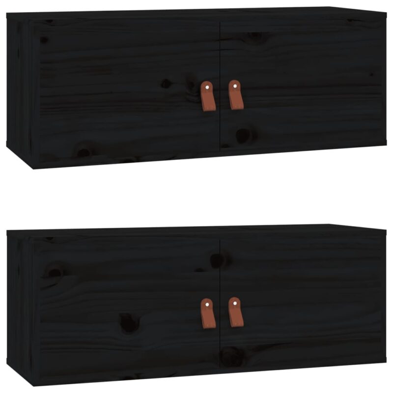 Armoires murales 2 pcs Noir 80x30x30 cm Bois de pin massif : Une fusion d’esthétique et de fonctionnalité