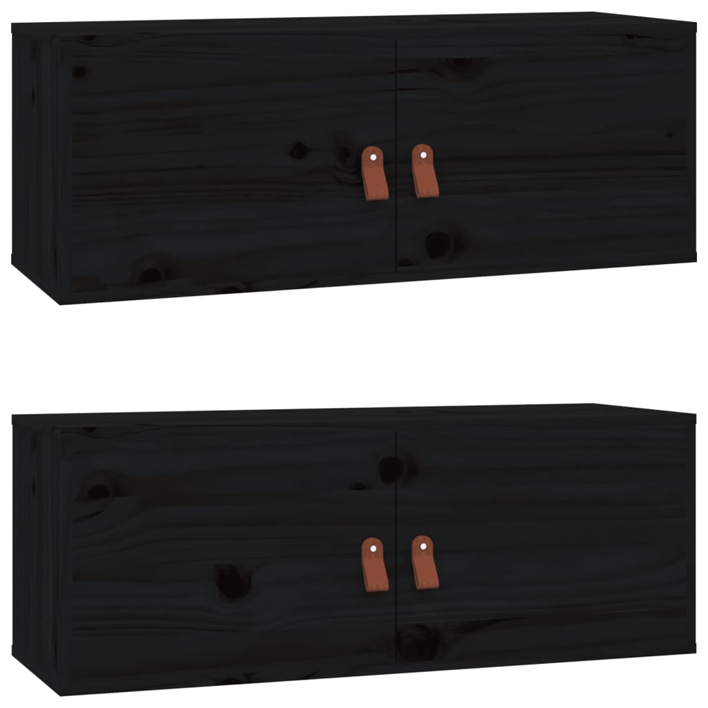 Armoires murales 2 pcs Noir 80x30x30 cm Bois de pin massif