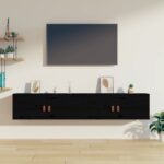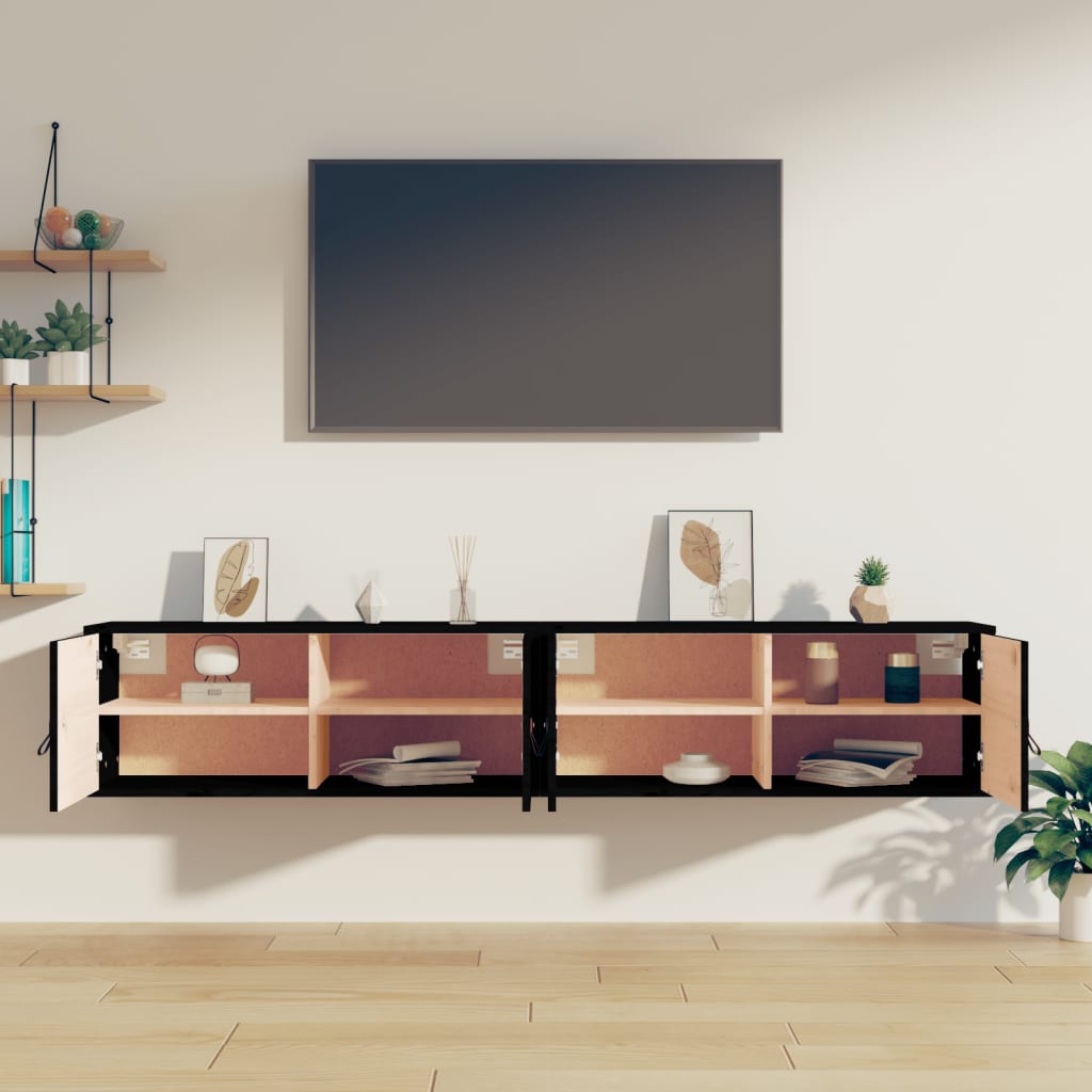 Armoires murales 2 pcs en bois de pin massif noir élégant