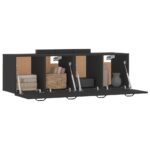 Détails des armoires murales 2 pcs Noir en Bois d’ingénierie