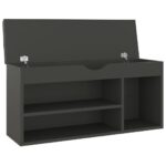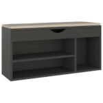 Ce banc à chaussures avec coussin gris 104x30x49 cm aggloméré est la solution idéale pour maintenir vos chaussures en ordre tout en offrant une assise douillette. Son design fonctionnel permet à la fois de ranger vos pieds-de-roi et de disposer d’un coin confortable pour chausser ou déchausser vos souliers. La surface facile à entretenir avec simplement un tissu humide permet de garder le banc comme neuf, faisant de lui un ajout pratique et stylé à votre espace.