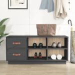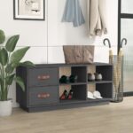 Banc à chaussures gris en bois de pin massif : style et fonctionnalité