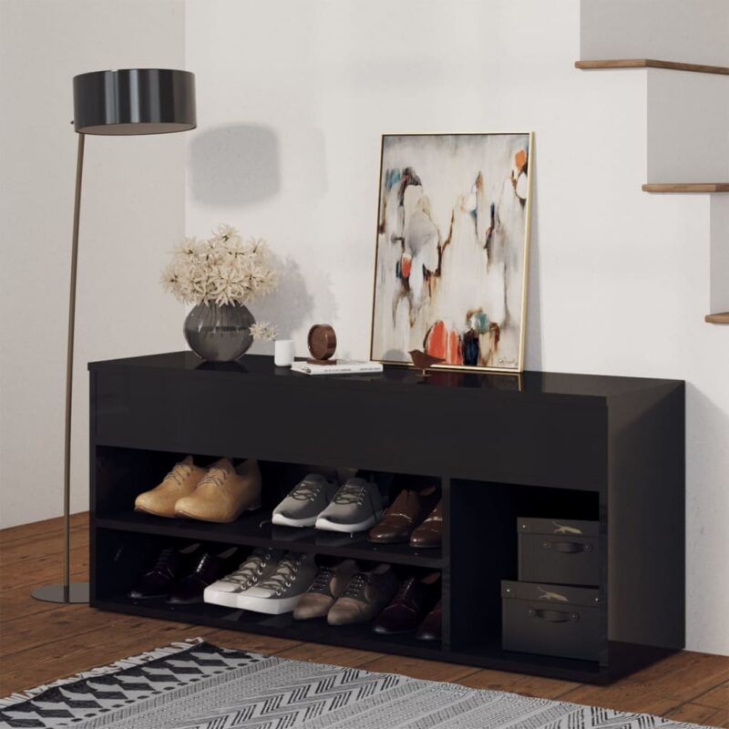 Découvrez l’élégance et la fonctionnalité du Banc à chaussures Noir brillant