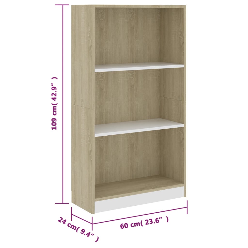 Apportez une touche d’élégance intemporelle à votre intérieur avec cette Bibliothèque 3 niveaux Blanc chêne 60x24x109 cm Bois ingénierie. Son allure raffinée et sa finition soignée la rendent aussi esthétique que fonctionnelle. Robuste et conçue pour durer grâce à l’utilisation de matériaux de haute qualité, cette armoire peut accompagner votre quotidien pendant des années. Offrant trois compartiments généreux, elle vous permettra de ranger efficacement vos livres, magazines et DVD ainsi que vos bibelots et appareils multimédias. Parfaitement adaptée pour un usage varié, cette étagère s’intègrera aussi bien dans votre salon, votre chambre que votre entrée, mettant de l’ordre dans vos affaires tout en restant à portée de main. Nettoyer ce meuble est un jeu d’enfant; un simple coup de chiffon humide suffira. Son assemblage est tout ce qu’il y a de plus simple.