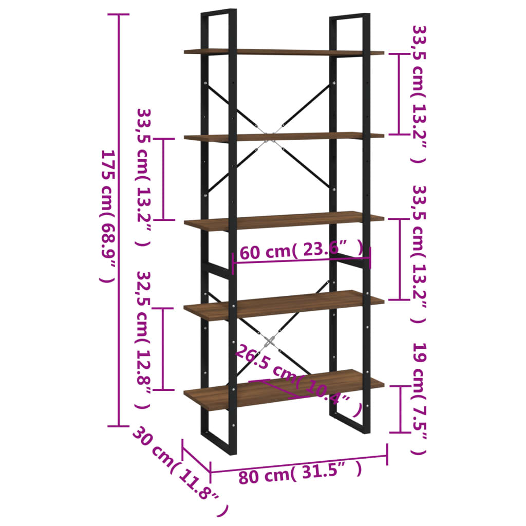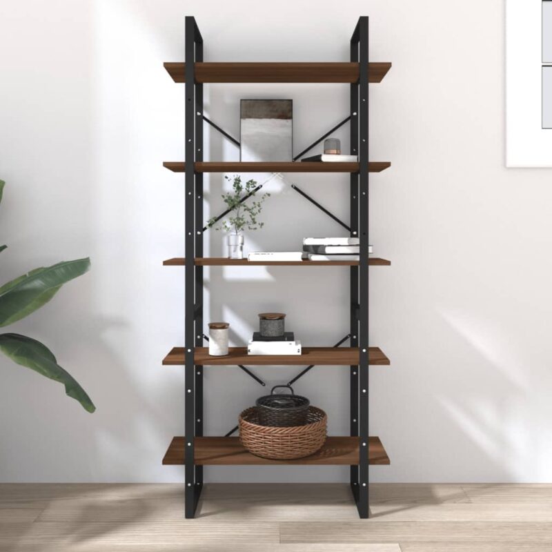 Bibliothèque 5 niveaux Chêne brun 80x30x175cm Bois d’ingénierie