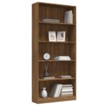 Élégante bibliothèque 5 niveaux chêne marron pour un intérieur chic et organisé