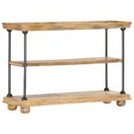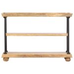 Transformez votre espace avec l’élégance du style industriel grâce à notre élégante Bibliothèque à 2 niveaux 110x35x75 cm Bois de manguier et acier. C’est la solution parfaite pour ranger et exposer livres, magazines ou même vos souvenirs préférés. Dotée d’une structure en acier enduit de poudre, cette bibliothèque affiche un look distinctif qui capte l’essence d’un design urbain chic. Les étagères, confectionnées avec du bois de manguier solide et tropical, sont non seulement résistantes mais aussi attrayantes grâce à leur finition méticuleuse et leur grain unique qui leur confère un caractère unique.