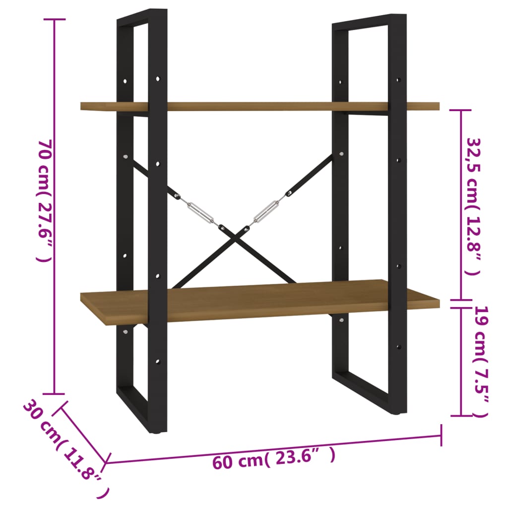 Bibliothèque à 2 niveaux Marron miel 60x30x70 cm Pin massif pour intérieur élégant et rustique