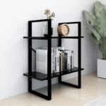 Présentation de la bibliothèque à 2 niveaux noire en aggloméré