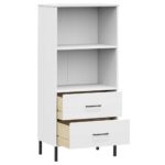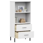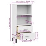 La bibliothèque à 2 tiroirs Blanc 60x35x128,5 cm Bois massif OSLO présente une structure résistante en pin massif. Ce bois séduit non seulement par sa force inhérente mais aussi par sa beauté naturelle. Les veines droites et les nœuds du pin confèrent à chaque meuble une personnalité et un caractère uniques, apportant ainsi une touche d’authenticité à votre décor.