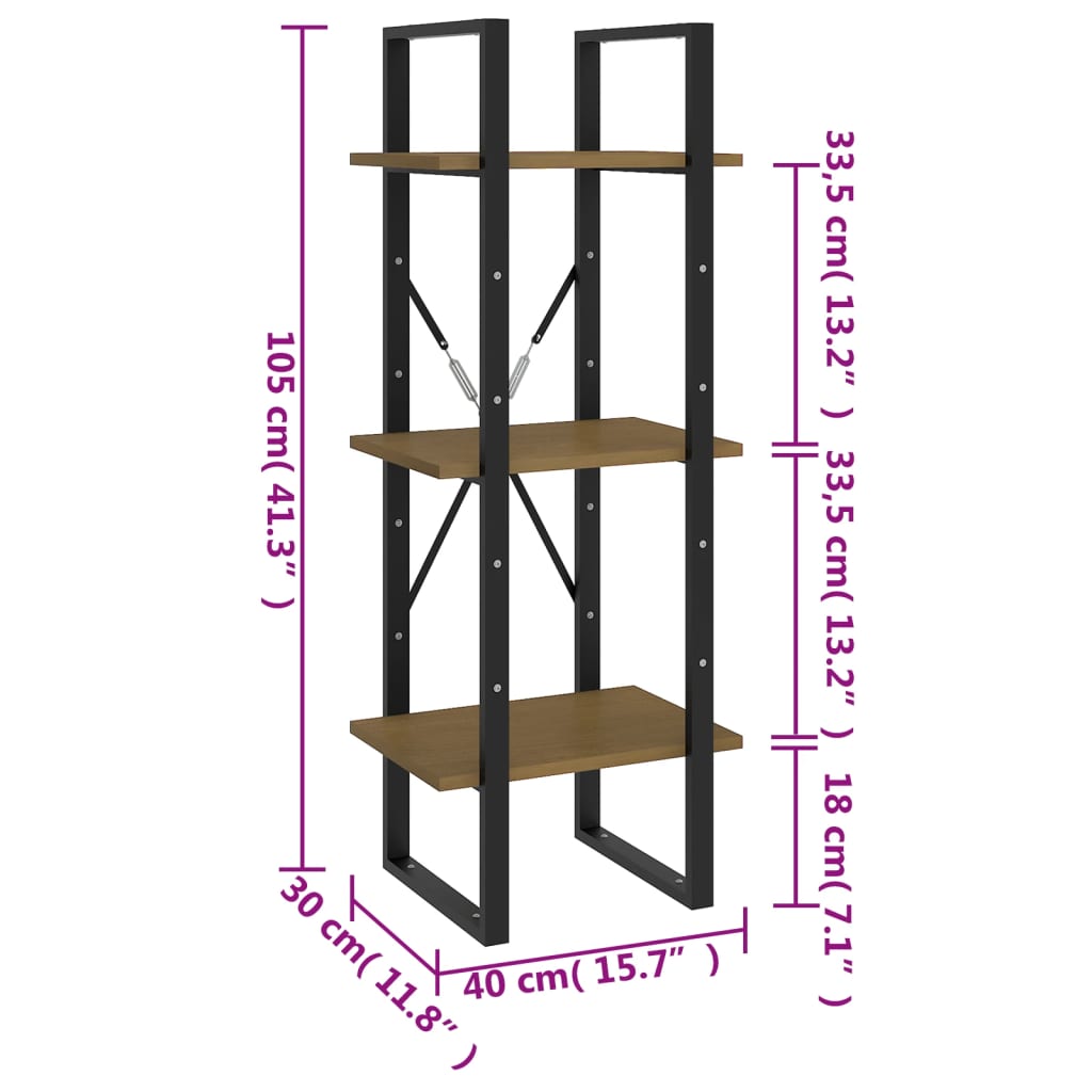 Bibliothèque à 3 niveaux Marron miel 40x30x105 cm Bois de pin