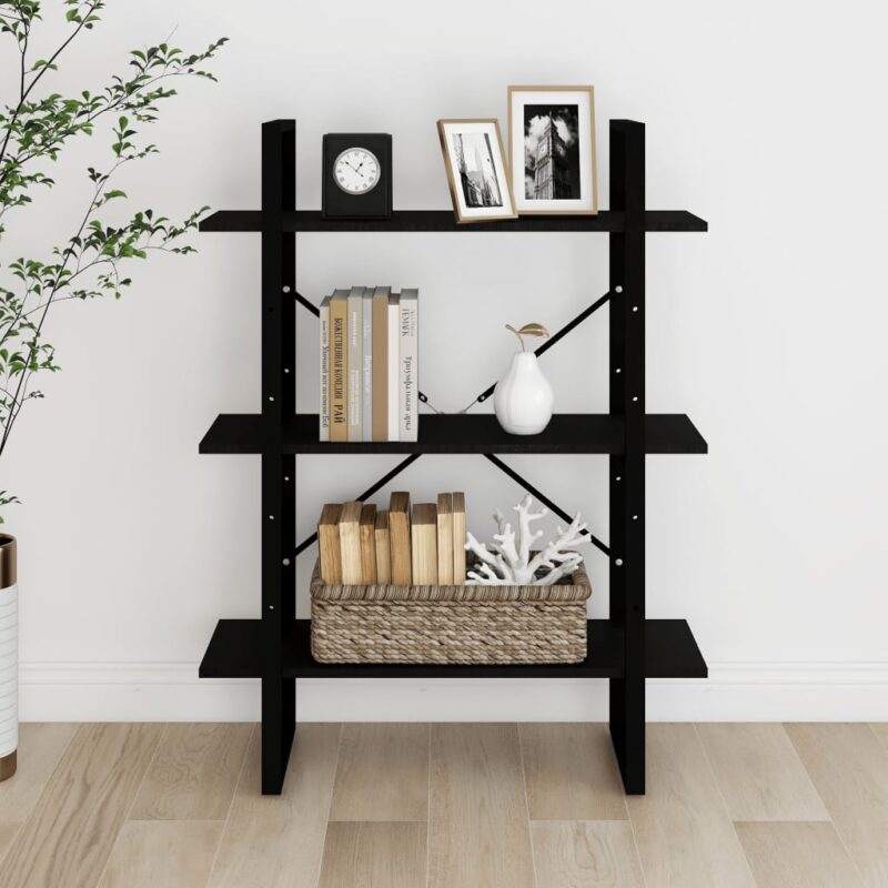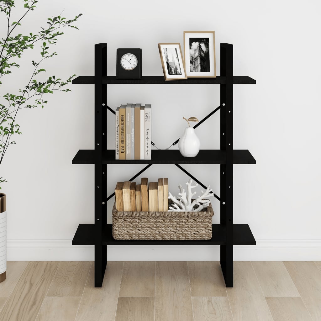 Explorez l’élégance fonctionnelle de la Bibliothèque à 3 niveaux Noir 80x30x105 cm Bois de pin massif