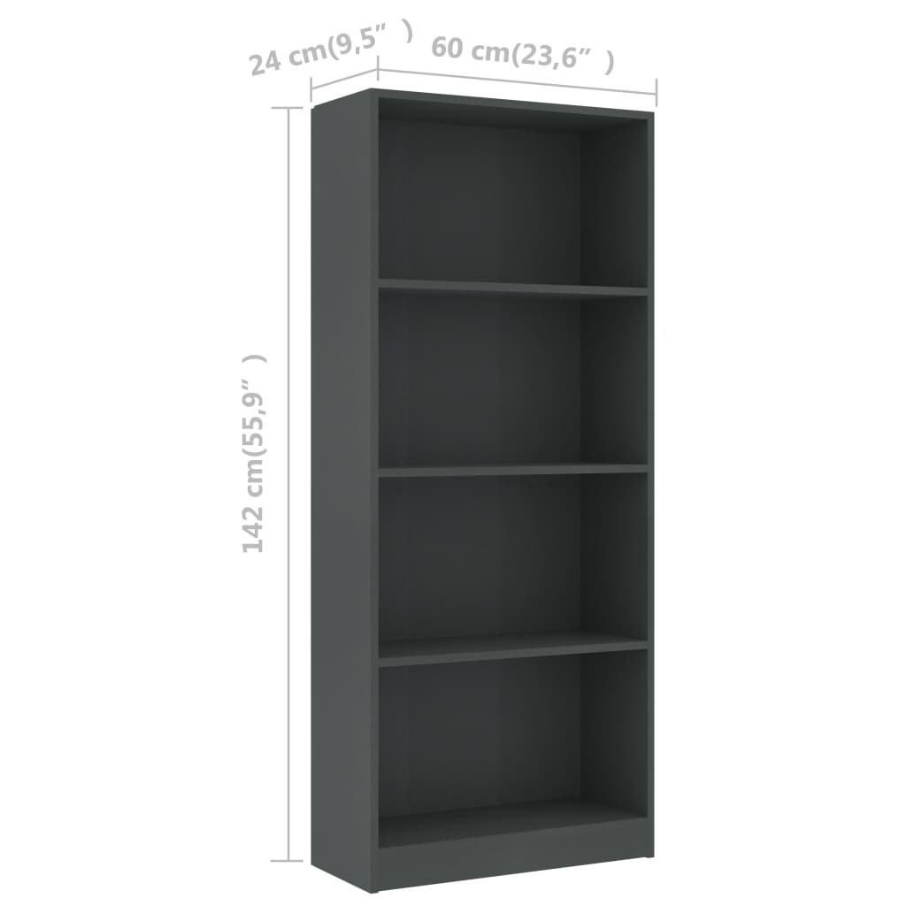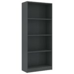 Découvrez la bibliothèque à 4 niveaux Gris 60x24x142 cm Aggloméré