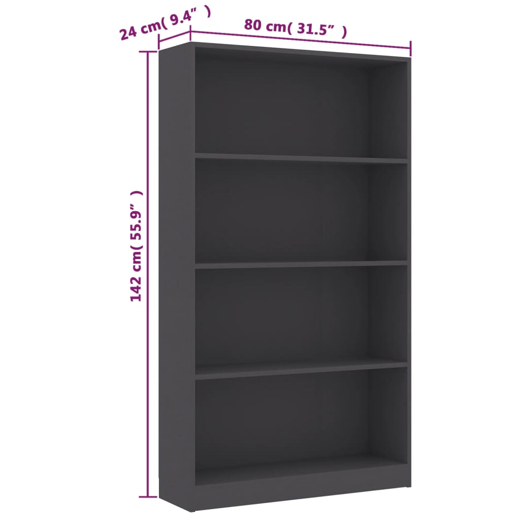 Bibliothèque à 4 niveaux Gris 80x24x142 cm Aggloméré : un rangement élégant et durable