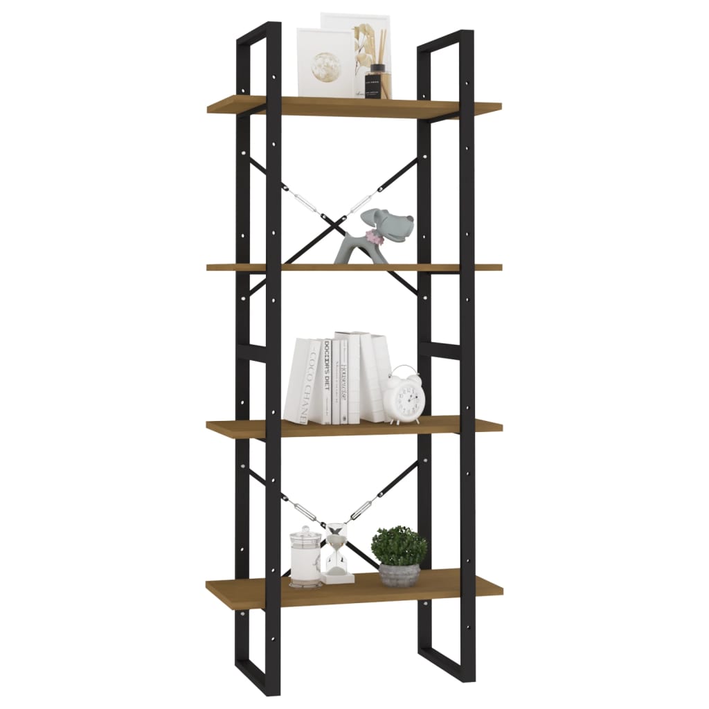 Optez pour cette bibliothèque à 4 niveaux marron 60x30x140 cm bois de pin massif pour apporter une touche industrielle à votre espace de vie. Confectionnée à partir de bois de pin robuste, elle offre solidité et durabilité, promettant des années de fidélité. Avec ses quatre étagères spacieuses, ce meuble vous permettra de disposer livres, revues et éléments décoratifs en toute élégance, tout en optimisant votre espace de rangement.