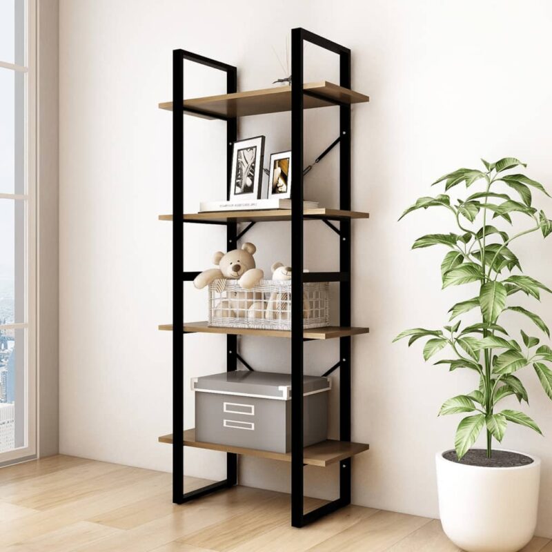 Élégance et fonctionnalité avec la bibliothèque marron en bois de pin