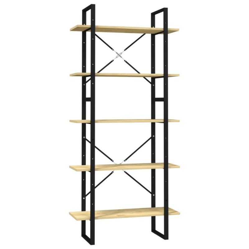 Élégante bibliothèque en bois de pin avec structure métallique