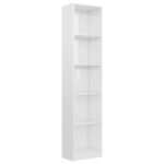Agrémentez votre espace de vie avec cette Bibliothèque à 5 niveaux Blanc brillant 40x24x175 cm Aggloméré, un meuble à la fois design et fonctionnel. Confectionnée avec un matériau d’aggloméré robuste, elle vous garantie stabilité et résistance sur le long terme. Les cinq étagères vous offrent un vaste espace pour organiser livres, DVD, et ornements décoratifs, tandis que son allure épurée contribue à l’embellissement de votre intérieur.