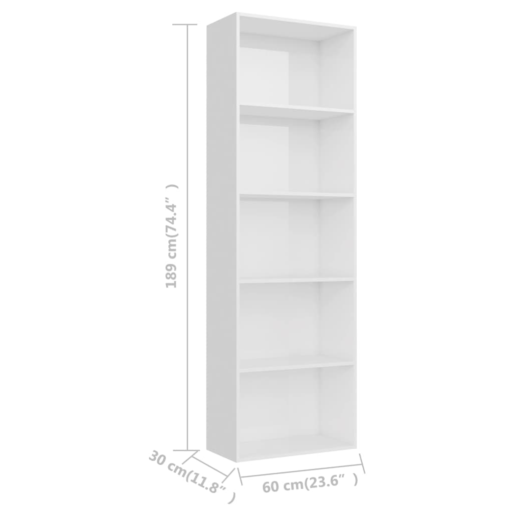 En somme, la Bibliothèque à 5 niveaux Blanc brillant 60x30x189 cm Aggloméré représente un choix étincelant pour quiconque souhaite combiner fonctionnalité et design dans son habitat.