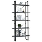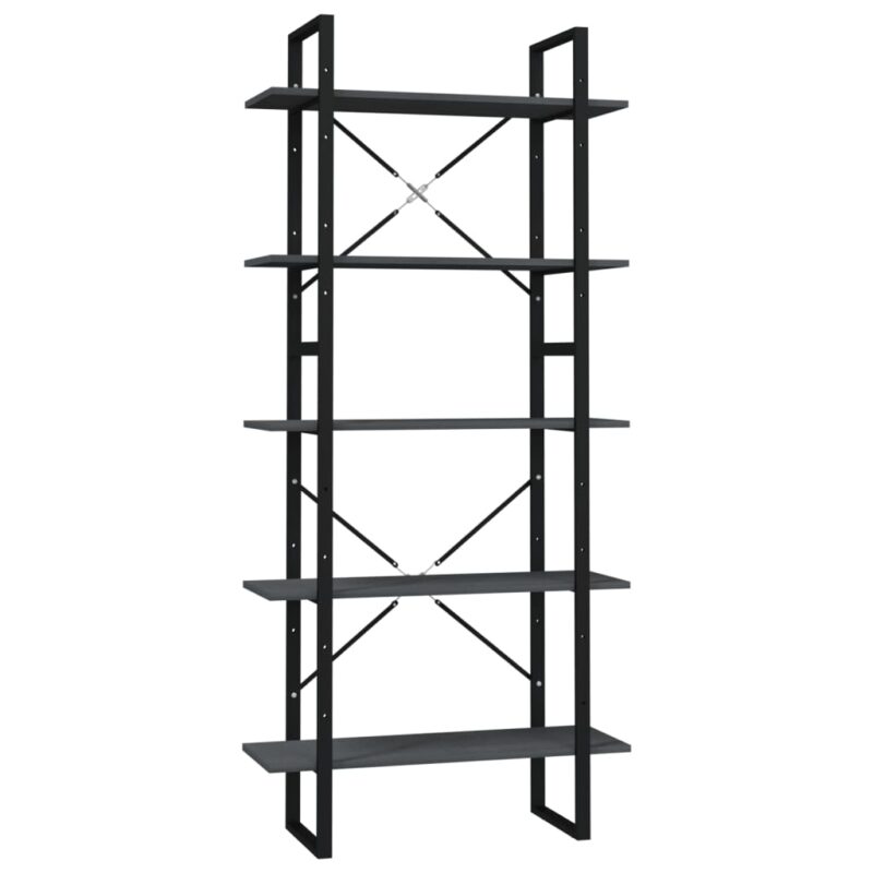 Détails de la bibliothèque à 5 niveaux Gris 80x30x175 cm Bois de pin
