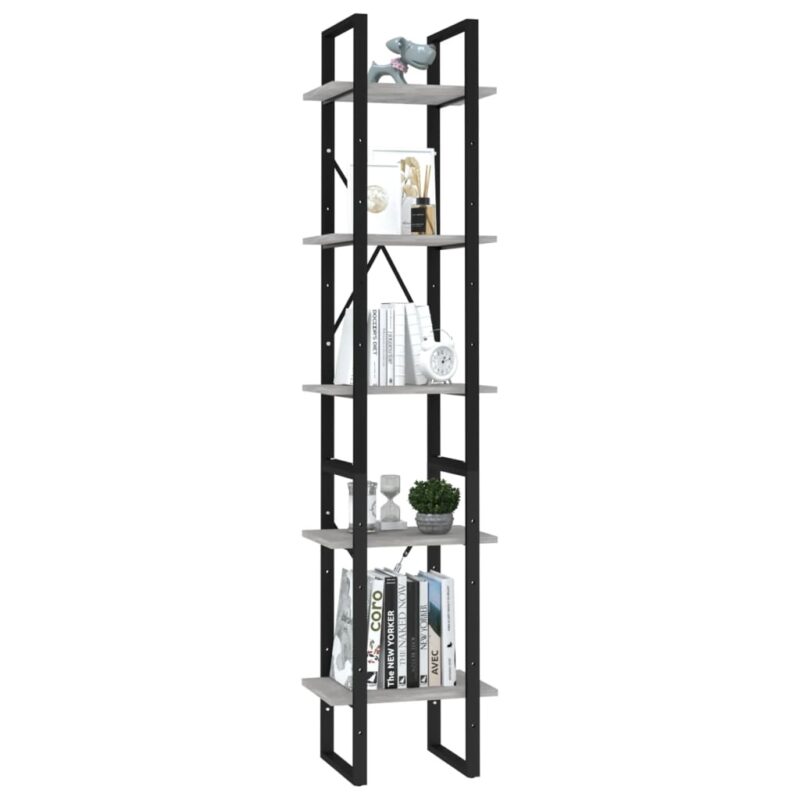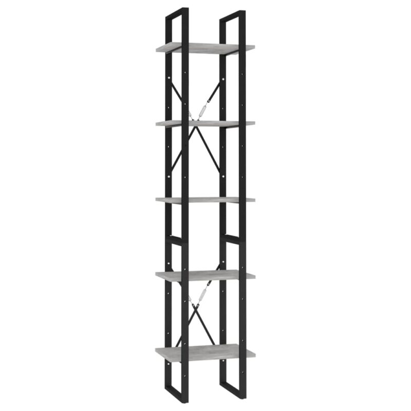 Optez pour un look industriel et moderne avec notre Bibliothèque à 5 niveaux Gris béton 40x30x175 cm Aggloméré qui s’harmonisera parfaitement avec votre décor existant. Fabriquée à partir de panneaux d’aggloméré de première qualité soutenus par des cadres métalliques robustes, cette étagère est garantie de résister à l’épreuve du temps. Avec ses 5 niveaux, elle vous offre un espace abondant pour exposer vos collections de livres ou objets décoratifs tout en gardant votre espace organisé et stylé. Le nettoyage est un jeu d’enfant, un simple coup de chiffon humide suffit à maintenir son élégance.