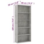 Dévoilant une esthétique épurée, notre bibliothèque à 5 niveaux Gris béton 80x30x189 cm Aggloméré s’harmonise avec élégance à tout type de décoration intérieure. Conçue pour enrichir votre espace de vie, elle apporte une touche de modernité à votre ambiance actuelle. Le matériau en aggloméré garantit sa robustesse et sa durabilité, vous assurant ainsi un investissement pérenne pour vos besoins de rangement et de décoration.