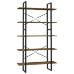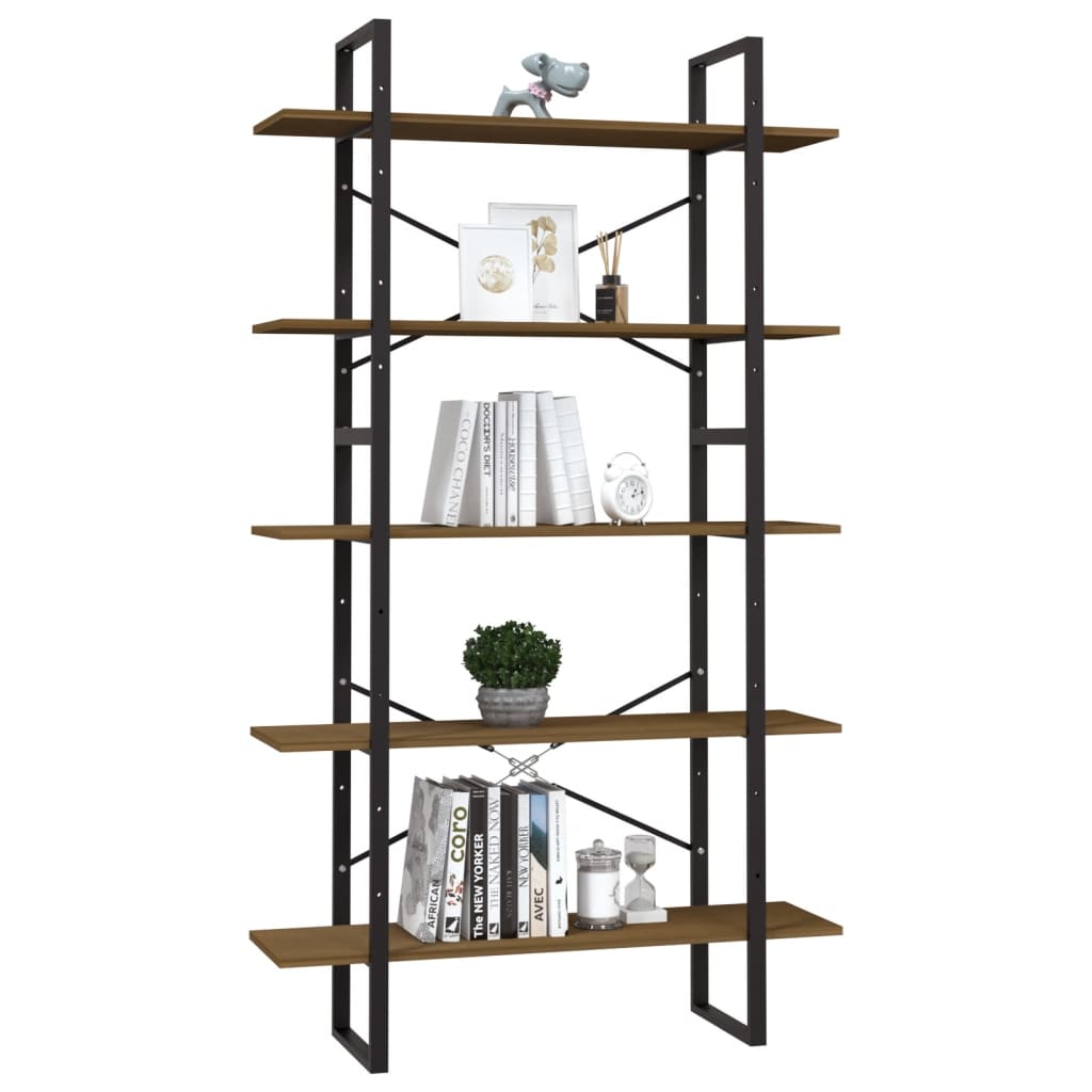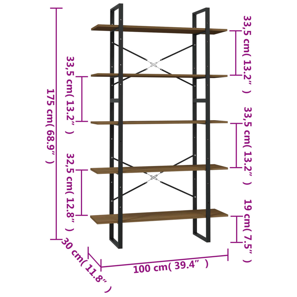 Agrémentez votre espace de vie avec notre bibliothèque à 5 niveaux marron 100x30x175 cm Bois de pin, une pièce de mobilier qui allie modernité et charme industriel. Sa structure est conçue en pin robuste et métal pour garantir non seulement sa solidité mais également une utilisation durable. Avec ses cinq étagères spacieuses, elle est idéale pour exposer une collection de livres, des revues ou vos objets déco préférés. Entretenez-la aisément avec juste un coup de chiffon humide. L’ensemble se compose de deux sections de différentes hauteurs pour créer une disposition personnalisée selon vos goûts et besoins.