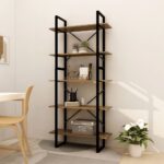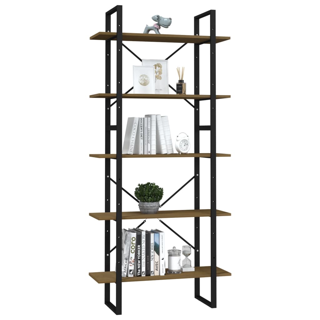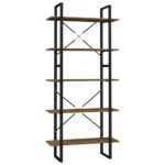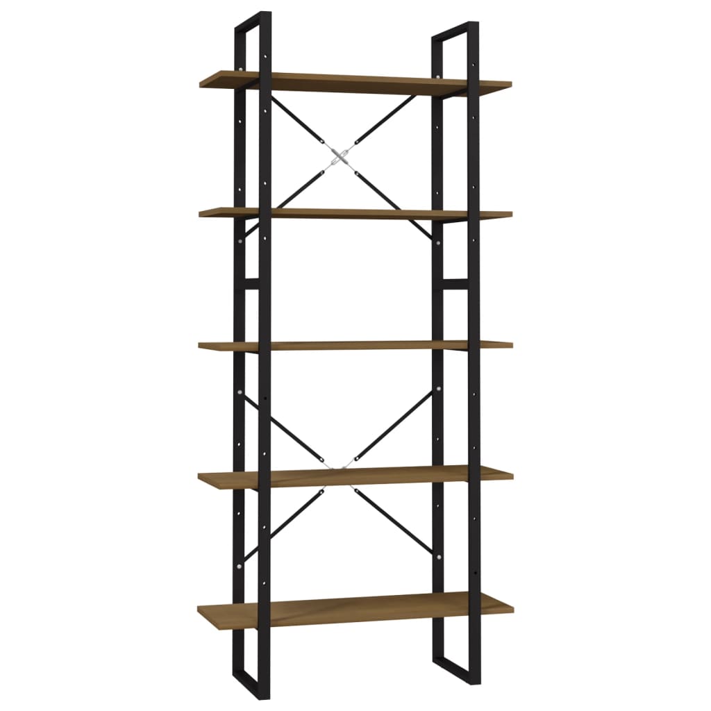 Détails de la bibliothèque à 5 niveaux Marron en Bois de pin
