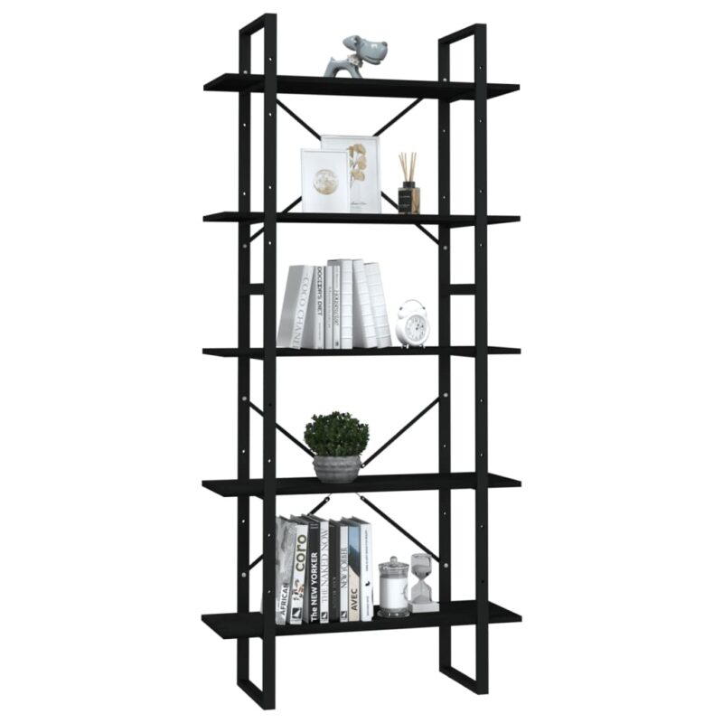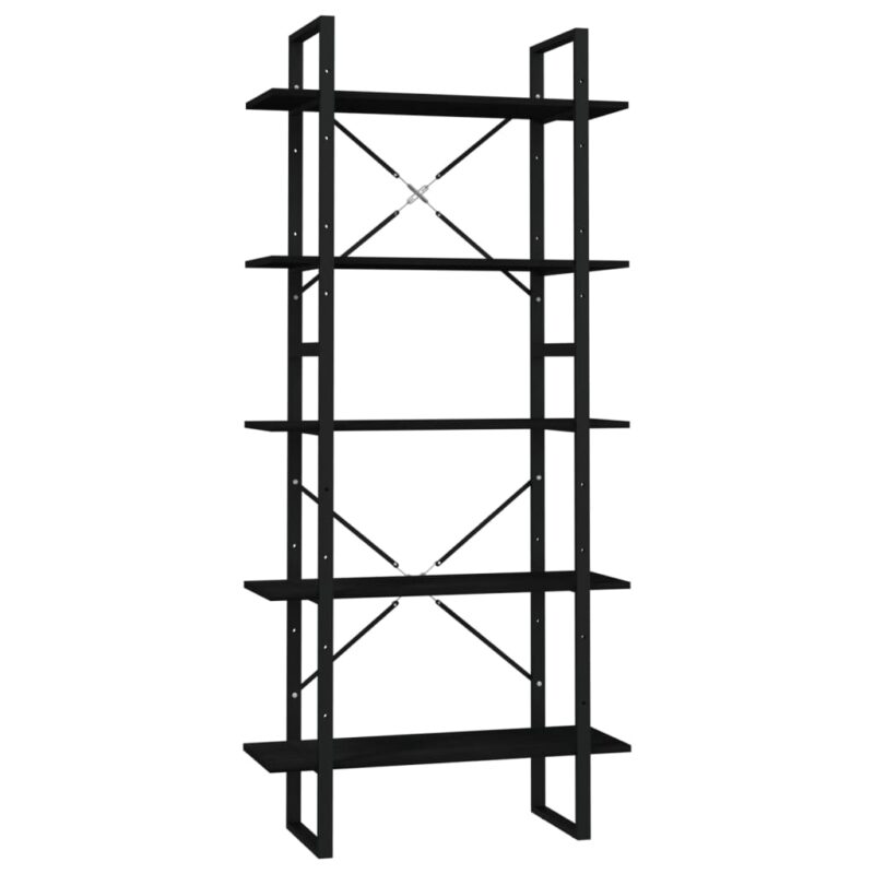 Détails de la bibliothèque à 5 niveaux noir 80x30x175 cm bois de pin