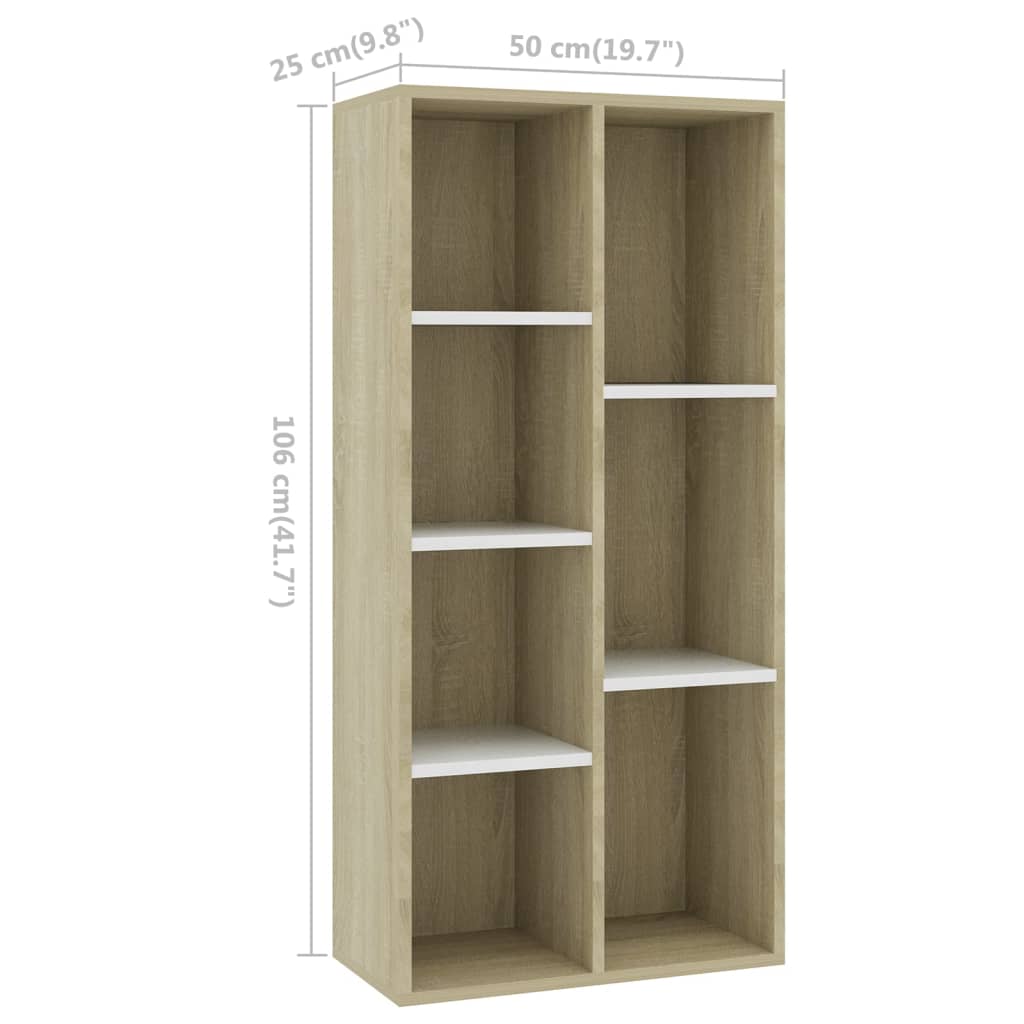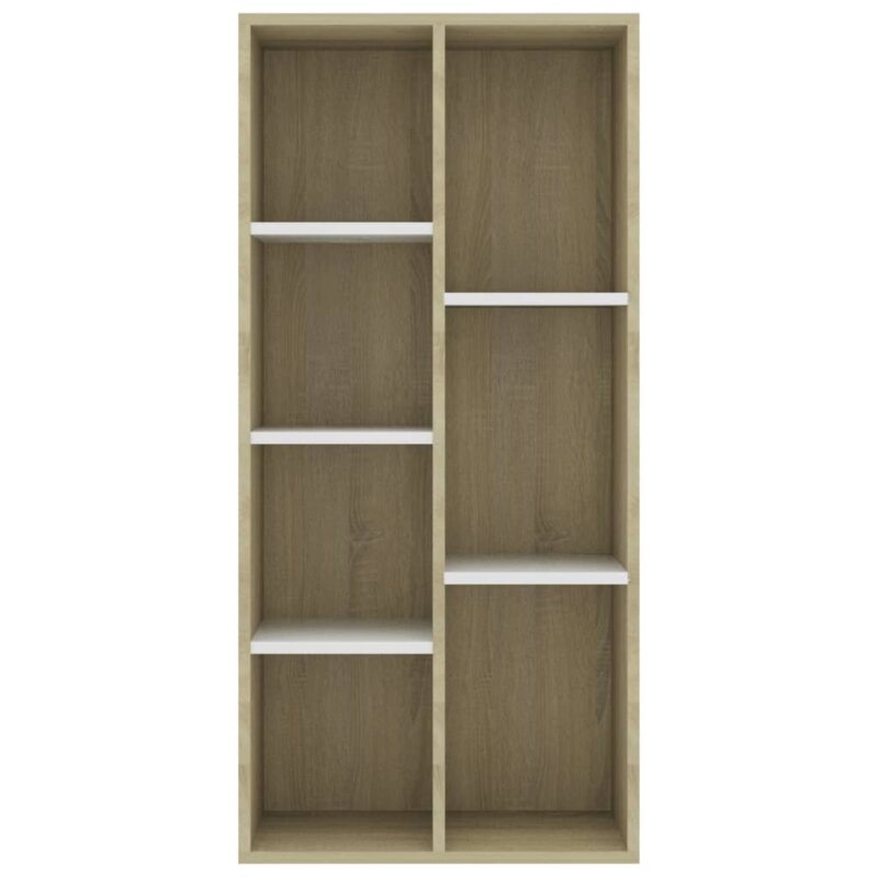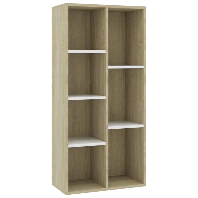 Apportez une esthétique raffinée et fonctionnelle à votre espace avec la Bibliothèque Blanc et chêne Sonoma 50x25x106 cm Aggloméré. Cette pièce de mobilier, non seulement embellit votre intérieur par son allure sophistiquée mais assure aussi une solution de rangement efficace. Fabriquée à partir d’aggloméré de haute qualité, sa solidité et sa longévité sont sans faille. Dotée de sept étagères, elle offre un volume généreux pour classer vos lectures favorites, vos magazines, DVD et équipements multimédias en toute simplicité.